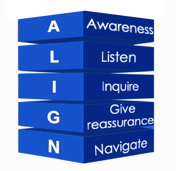 This is where the ALIGN model (based on Internal Family Systems) becomes incredibly powerful. When someone is grumpy, defensive, or negative, parts of us usually jump in fast. A part wants to argue. Another wants to fix. Another wants to withdraw or placate. And the moment those parts take over, the other person’s system senses it.